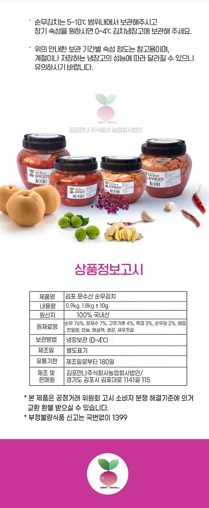 김포 문수산 순무김치 2kg