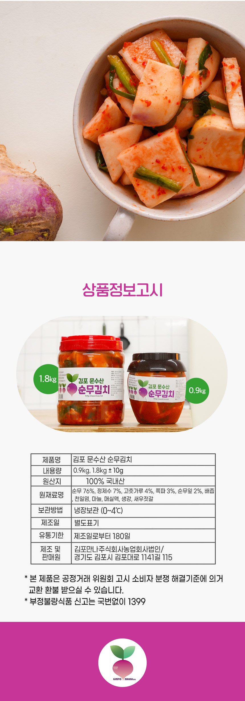김포 문수산 순무김치 3kg